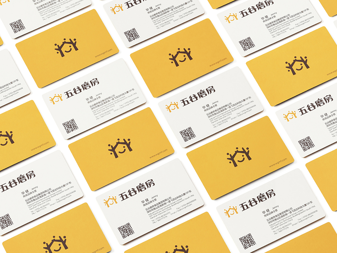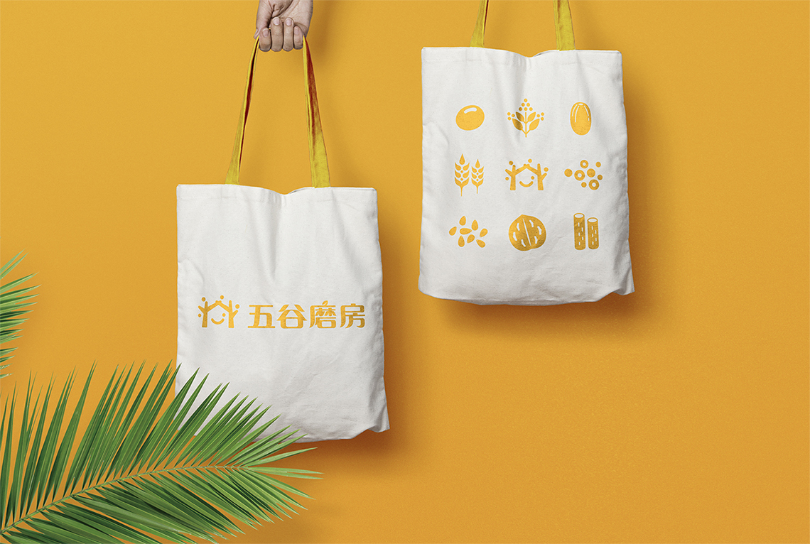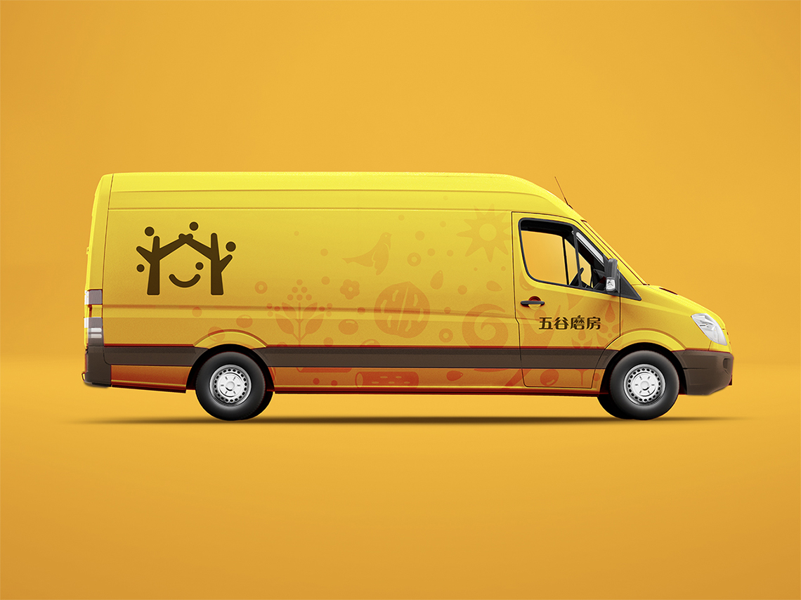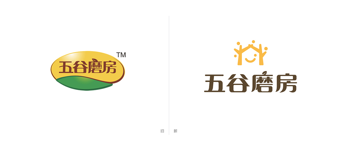 為解決五谷磨房原有品牌形象面臨的問題,全新的logo采用圖形標(biāo)加中文字的組合形式,Logo的整體設(shè)計(jì)簡單而富有親和力。品牌形象設(shè)計(jì)由五顆谷粒以及兩棵枝丫相連的樹圍繞著微笑的符號展開,如同父母牽手為家人搭起一個(gè)充滿歡樂的家,傳遞的是關(guān)愛與呵護(hù)的品牌愿景,同時(shí)也寓意著企業(yè)的不斷成長,以及“以人為本”的經(jīng)營理念。