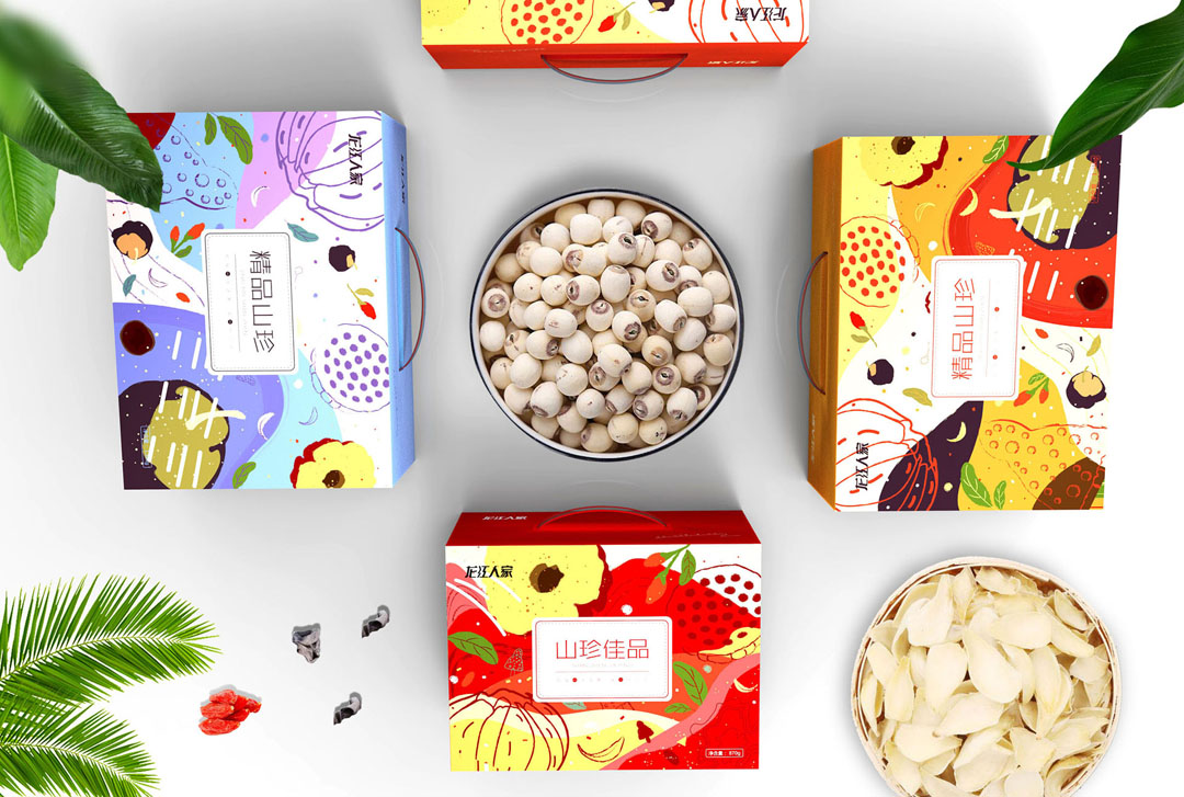 在與客戶多次溝通的基礎(chǔ)上,渡岸創(chuàng)意包裝團隊首先對龍江人家山珍產(chǎn)品,進行了品類整合,并根據(jù)企業(yè)的品牌屬性和不同種類產(chǎn)品的個性,運用時尚插圖形式,創(chuàng)意和設(shè)計了一套完整的山珍產(chǎn)品禮盒包裝,使得龍江人家在山珍伴手禮銷量倍增。