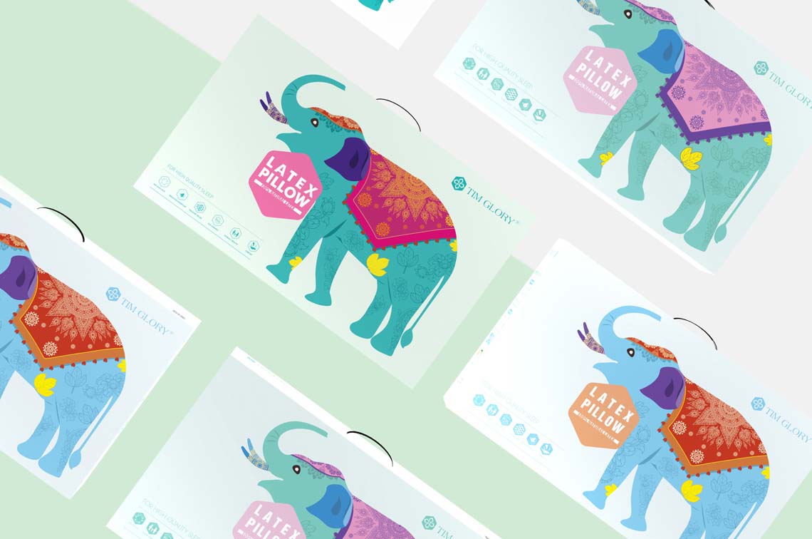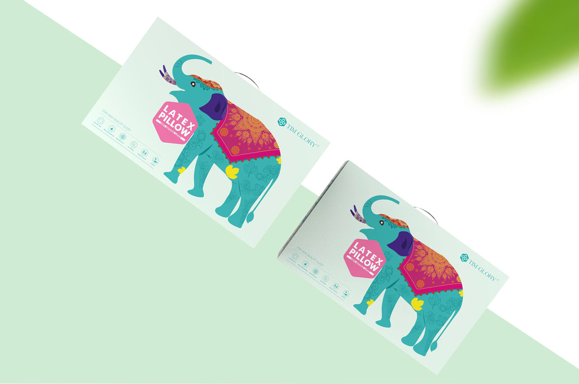 TIM GLORTY產(chǎn)品為泰國產(chǎn)品,包裝整體為純英文設(shè)計。缺少了中文解釋,所以只有靠畫面?zhèn)鬟_。TIM GLORTY真正的泰國天然乳膠枕(泰國---乳膠枕的最優(yōu)秀、最專業(yè)產(chǎn)地)。泰國成為我們的創(chuàng)意出發(fā)點,泰國代表元素有:大皇宮、大象、大鵬鳥、金鏈花,并以此來進行創(chuàng)作,元素中穿插泰國特色的裝飾文案,加深其泰國特色,使得包裝在出來后,在眾多乳膠枕包裝中脫穎而出。包裝升級后,銷量明顯提升,精致的包裝,使得消費者對TIM GLORTY品牌形象也更加信任。