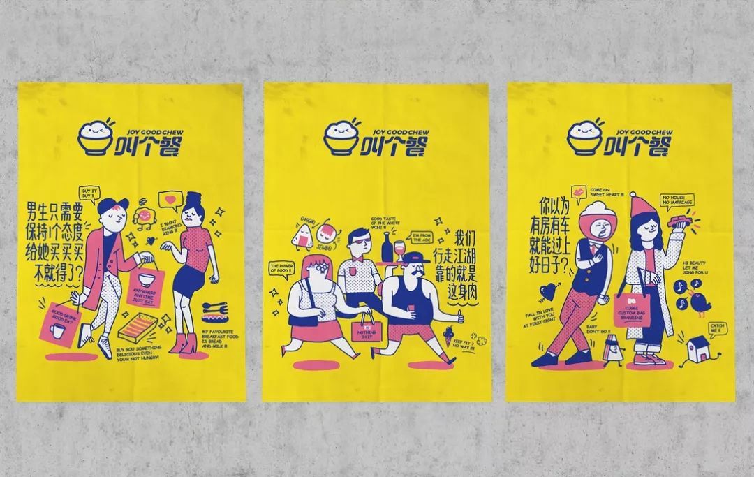 magicfire品牌設(shè)計(jì)師設(shè)計(jì),是以年輕上班族為目標(biāo)客群的外賣品牌,通過創(chuàng)作有趣的溝通性文案,用最簡單的材質(zhì)附上大膽的配色、個(gè)性鮮明的插畫,設(shè)計(jì)出讓年輕人喜愛并能自主分享的品牌內(nèi)容 。