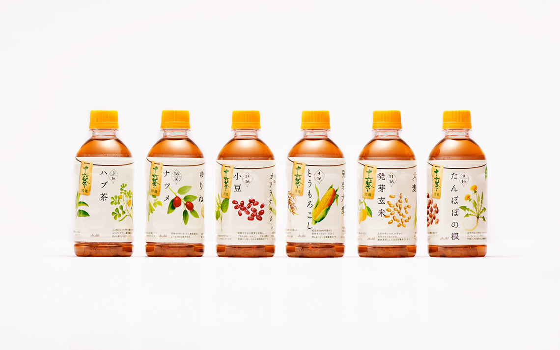 在6只瓶子上展示解說16種原料。采用這樣的設(shè)計(jì),是為了讓人們在品嘗和享用產(chǎn)品的同時(shí),獲得充滿生活氣息的愉悅感、柔和感以及培養(yǎng)健康體魄的智慧。
