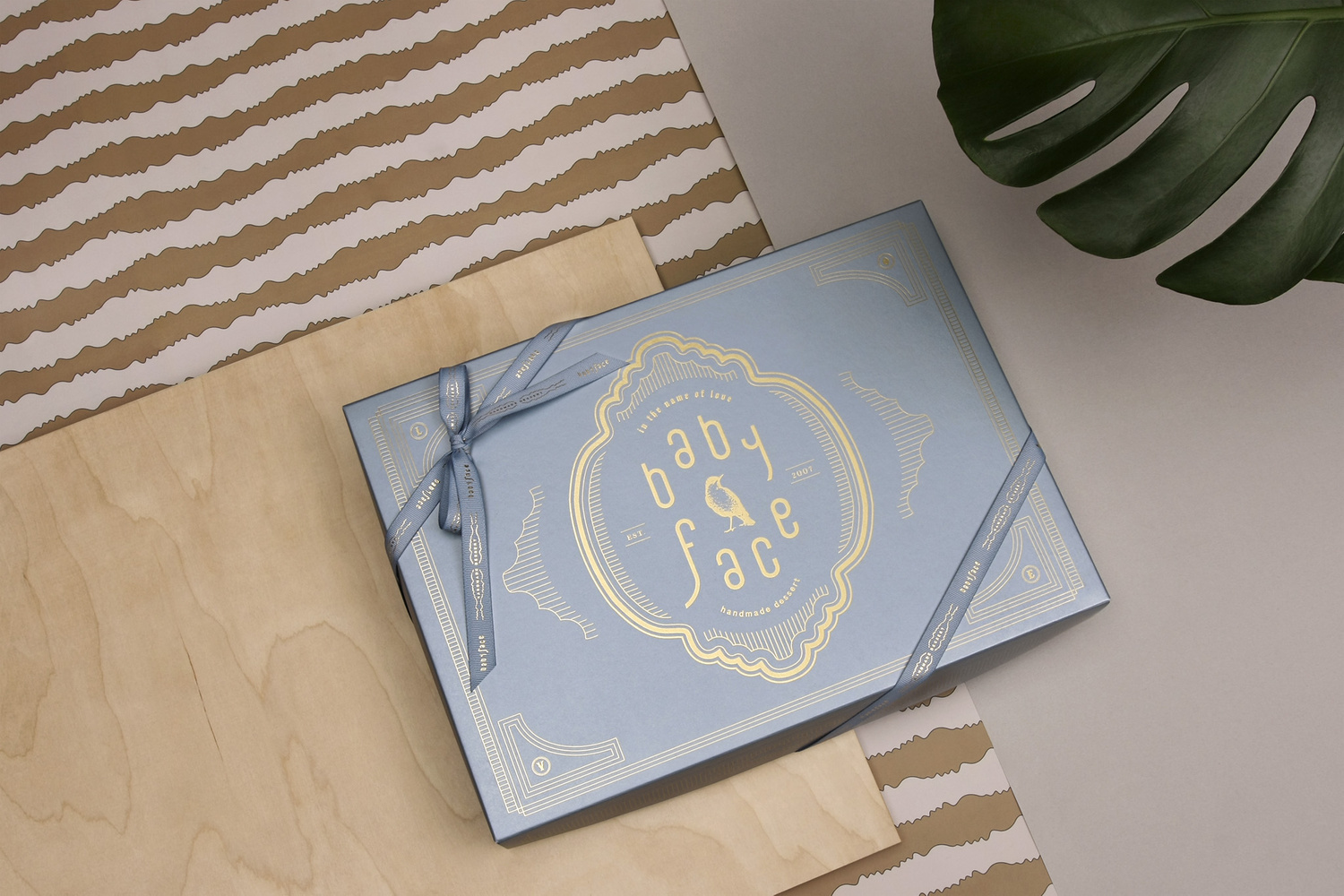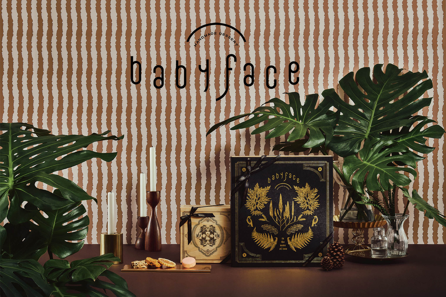 | babyface側(cè)臉線條 | 組成歐式logo外框與米白金色交錯的復古年代視覺感。