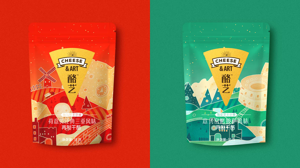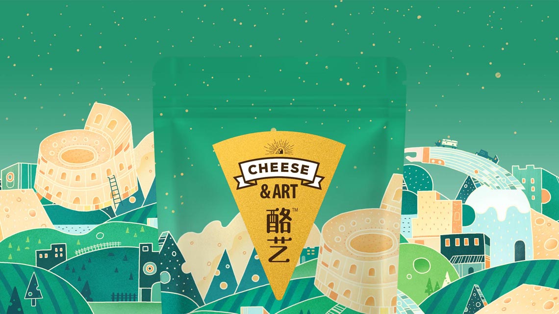 這是伊利旗下的品牌, 為了針對年輕消費群體, 客戶計劃對包裝提升新一輪升級。因此在設(shè)計上也應(yīng)當(dāng)表現(xiàn)故事性趣味感。我們通過區(qū)分對應(yīng)的口味分類,將各國的元素重組,并重新繪制出新的干酪地圖, 如圖中看到那樣,干酪的山體、長城干酪、 荷蘭風(fēng)車、羅馬斗獸場等等元素。在視覺上形成干酪世界,自然的融入到包裝載體中,使人對我們的產(chǎn)品有了聯(lián)想和購買欲望。