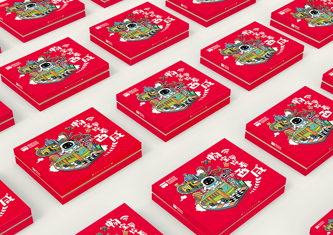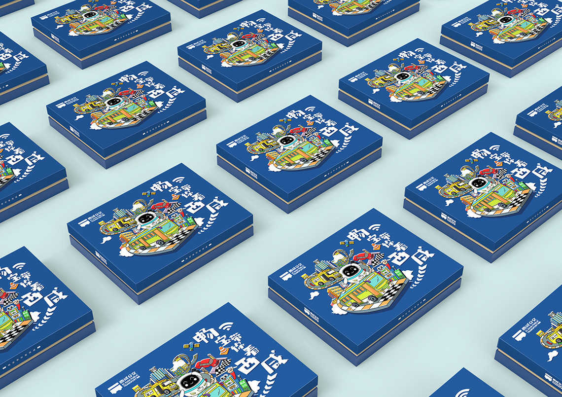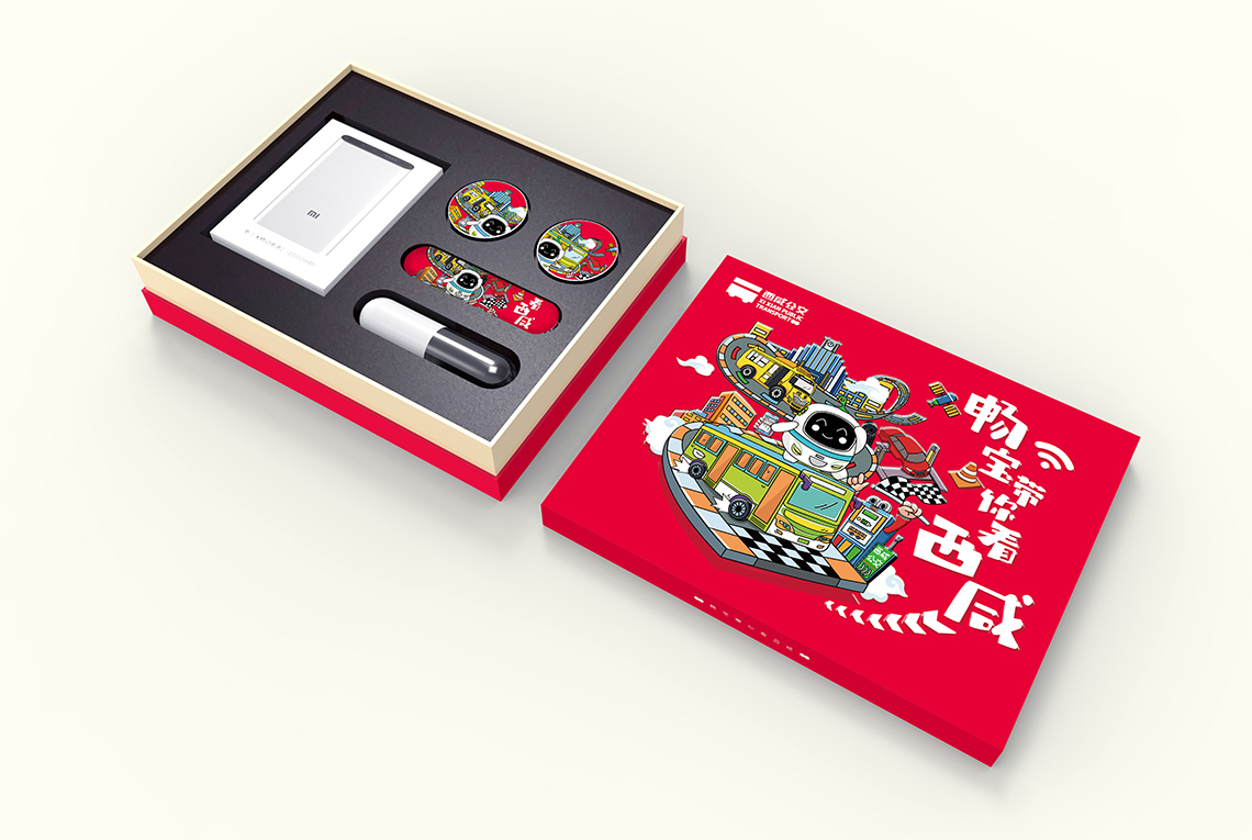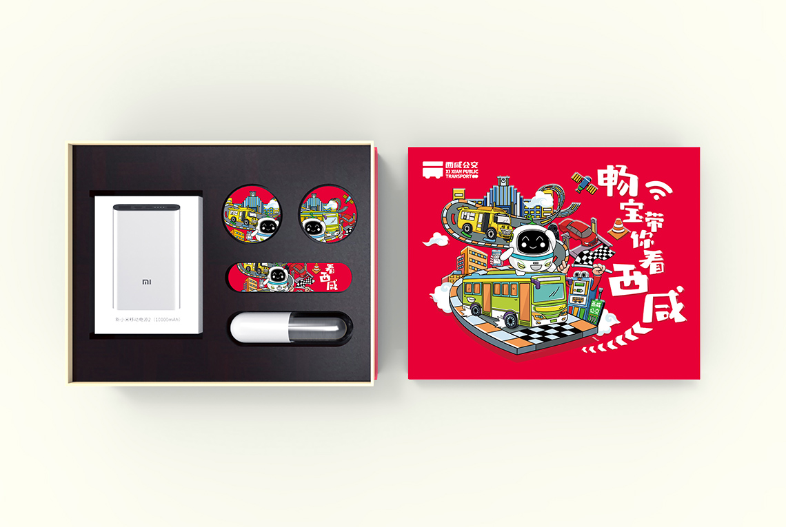 根據(jù)西咸公交綠色、智慧、定制、智能的服務(wù)理念和特點(diǎn),我們提出“智享生活”的理念,帶你看最精彩的,玩最好玩的,禮盒畫面中,企業(yè)“IP”暢寶以一位活潑的小導(dǎo)游形象向各位介紹特色的西咸公交。