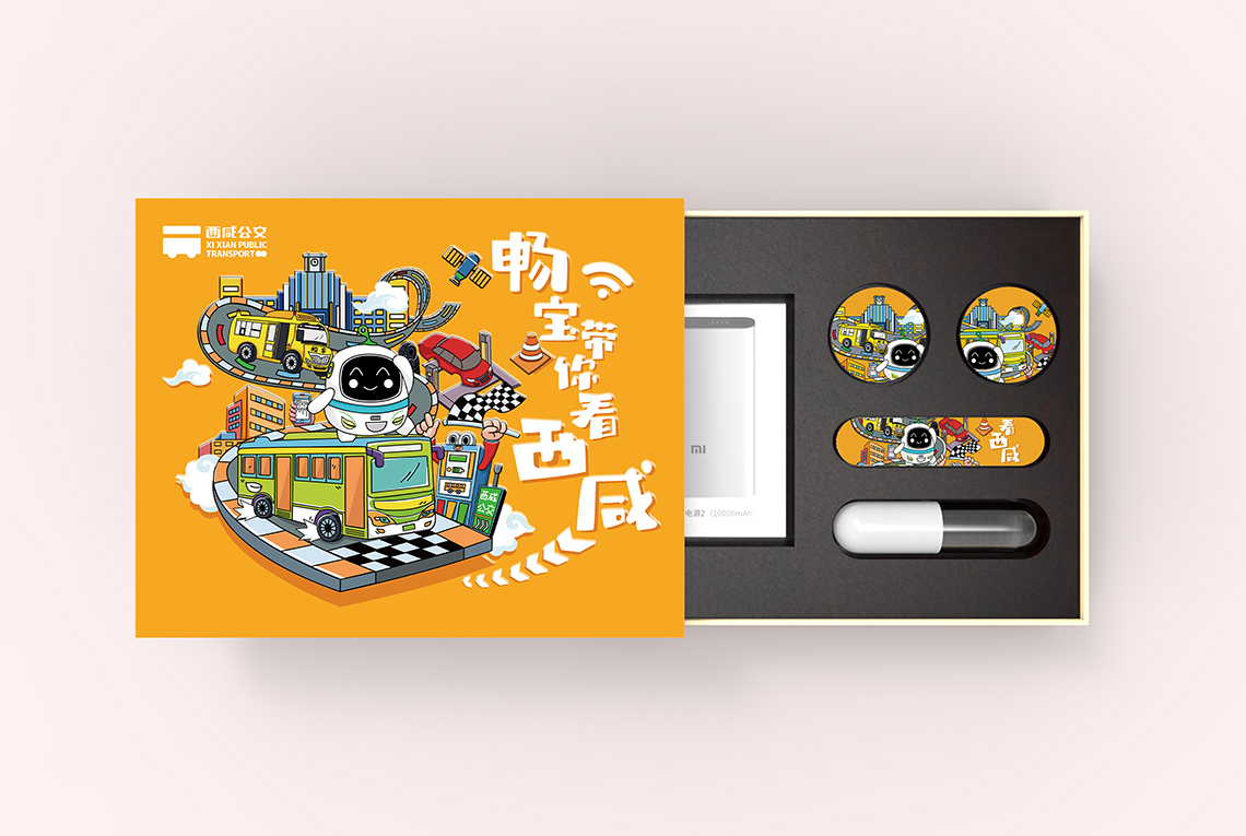 年輕、有趣的插畫形式,個(gè)性的構(gòu)圖方法,使畫面靈動(dòng)有趣,包裝中的每一個(gè)元素和細(xì)節(jié)都富有西咸公交的特色,在傳遞企業(yè)服務(wù)理念的同時(shí)也不失樂(lè)趣。