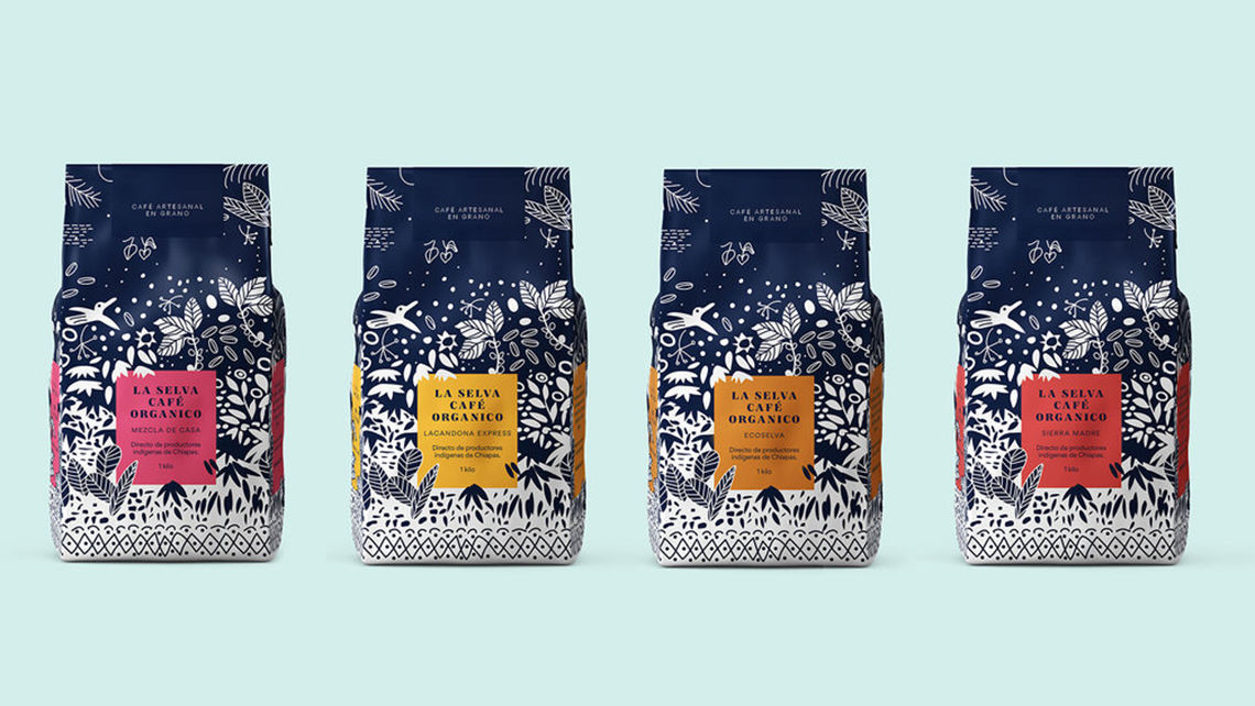 ? ? ? ? La Selva Café提供經(jīng)認(rèn)證的有機(jī)產(chǎn)品,經(jīng)過精心培育,沒有化學(xué)品,與墨西哥恰帕斯的叢林和森林和諧相處。它代表了恰帕斯咖啡的傳統(tǒng)品質(zhì),具有濃郁的酒體、濃郁的香氣和淡淡的酸度。海事組織印章的支持保證了其有機(jī)來源。為了重新設(shè)計,以前的包裝插圖的元素被采取,使它有一個更現(xiàn)代和更具吸引力的扭曲。深藍(lán)色的顏色和正負(fù)兩色之間的相互作用,說明了咖啡采摘的茂密叢林,這是該地區(qū)典型的動植物間的叢林。