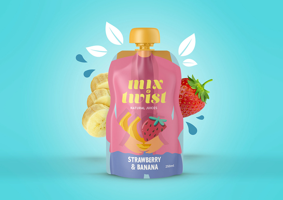 Mix&Twist的品牌和包裝設(shè)計(jì),一種不含添加劑或人工的天然果汁品牌,其特點(diǎn)是其主要成分的原始混合物。創(chuàng)造了一個(gè)引人注目的和與眾不同的設(shè)計(jì),基于主要的消費(fèi)者:青少年正在尋找一個(gè)健康,但花哨的產(chǎn)品。這就是為什么要為不同的身體青少年角色制作插圖,所以當(dāng)他們喝果汁時(shí),他們就會成為你身體的一部分。對于標(biāo)志,使用一個(gè)更冷靜的風(fēng)格,帶來信心和嚴(yán)肅的設(shè)計(jì),代表最健康的部分混合和扭曲。這一設(shè)計(jì)打破了果汁行業(yè)的標(biāo)準(zhǔn),無疑會引起超市的注意。