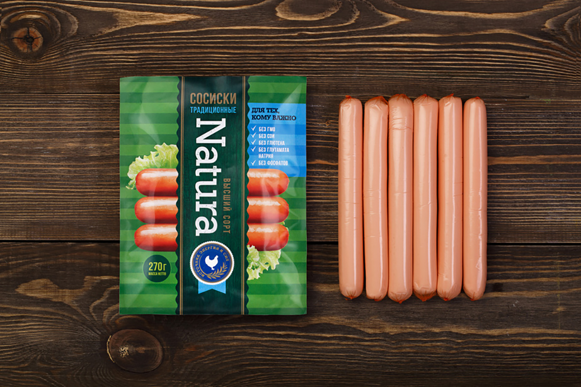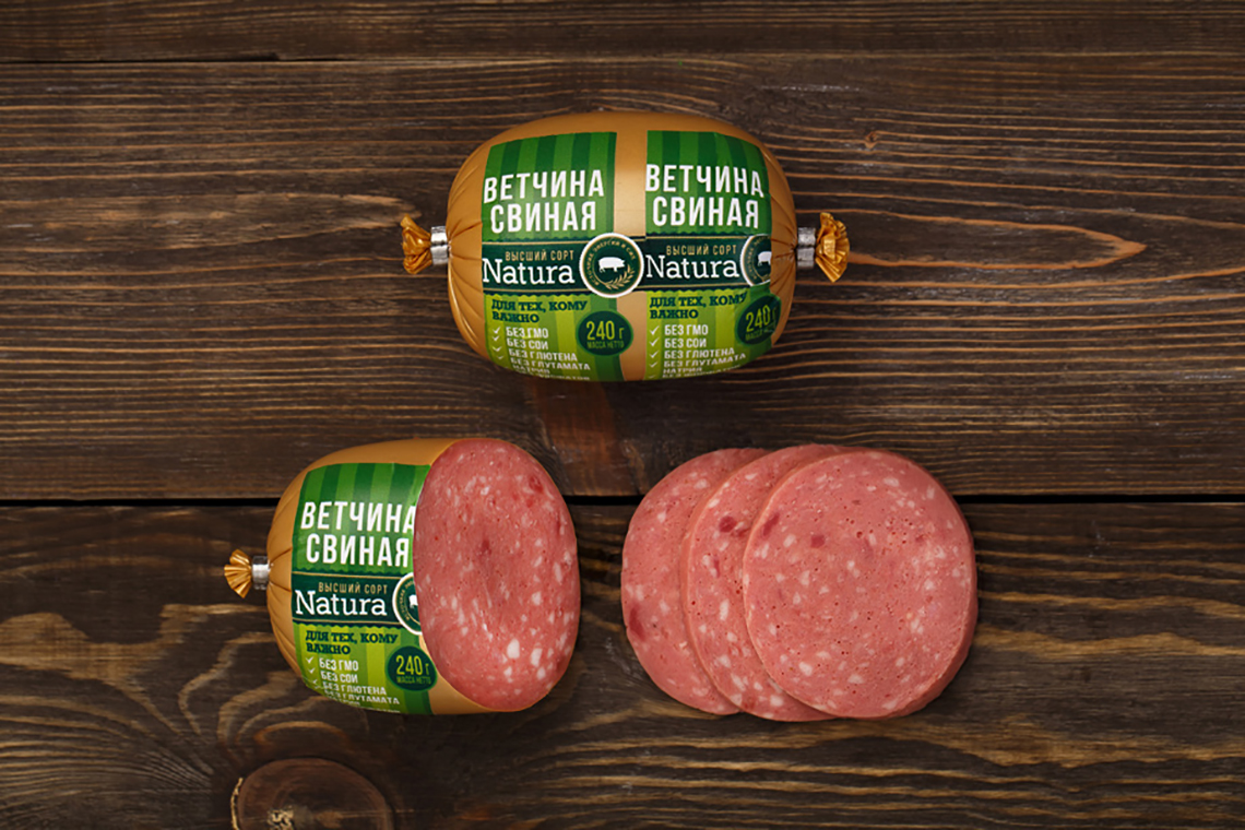 該產品-不含轉基因、大豆、谷蛋白、谷氨酸鈉和磷酸鹽的家禽和豬肉的香腸和火腿,