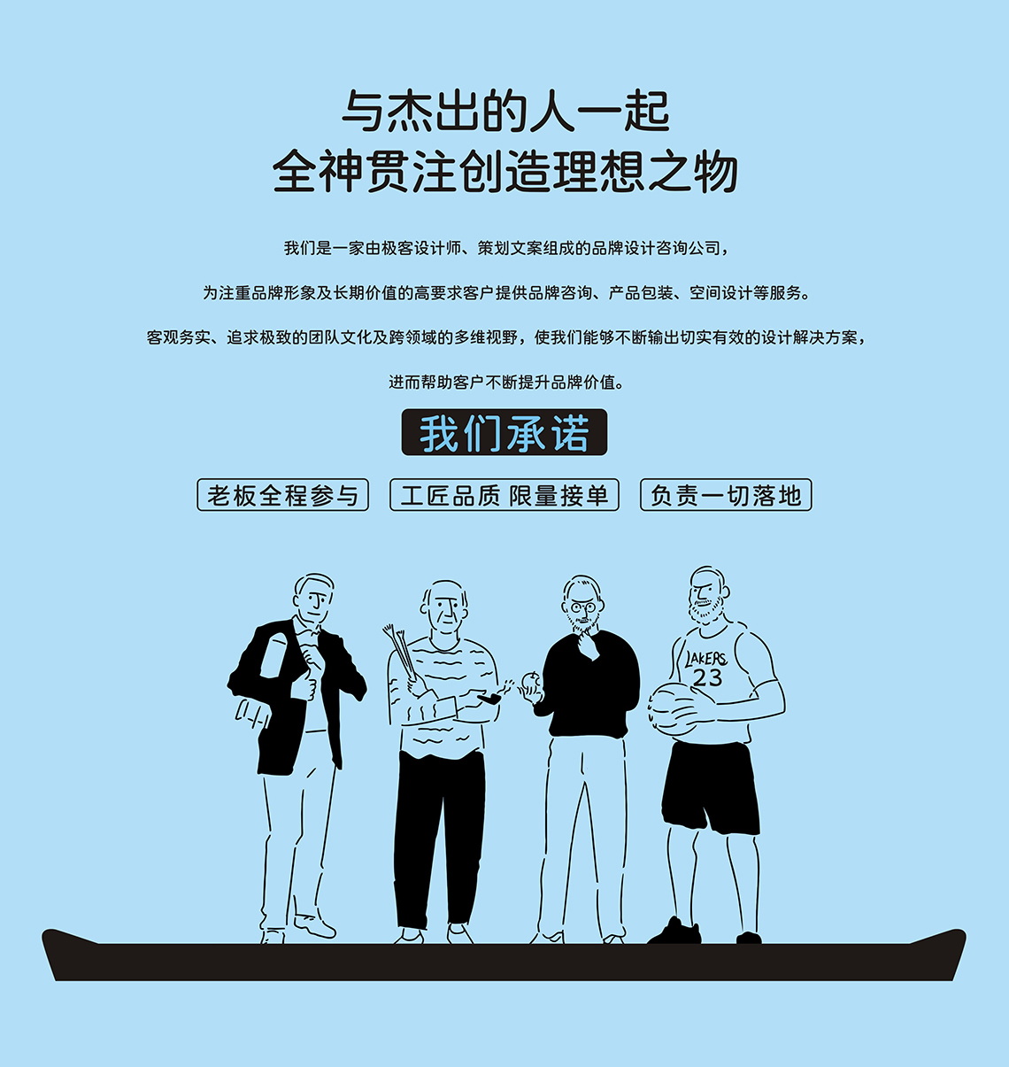 我們是一家由極客設(shè)計師、策劃文案組成的品牌設(shè)計咨詢公司,為注重品牌形象及長期價值的高要求客戶提供品牌咨詢、產(chǎn)品包裝、空間設(shè)計等服務(wù)??陀^務(wù)實(shí)、追求極致的團(tuán)隊(duì)文化及跨領(lǐng)域的多維視野,使我們能夠不斷輸出切實(shí)有效的設(shè)計解決方案,進(jìn)而幫助客戶不斷提升品牌價值。